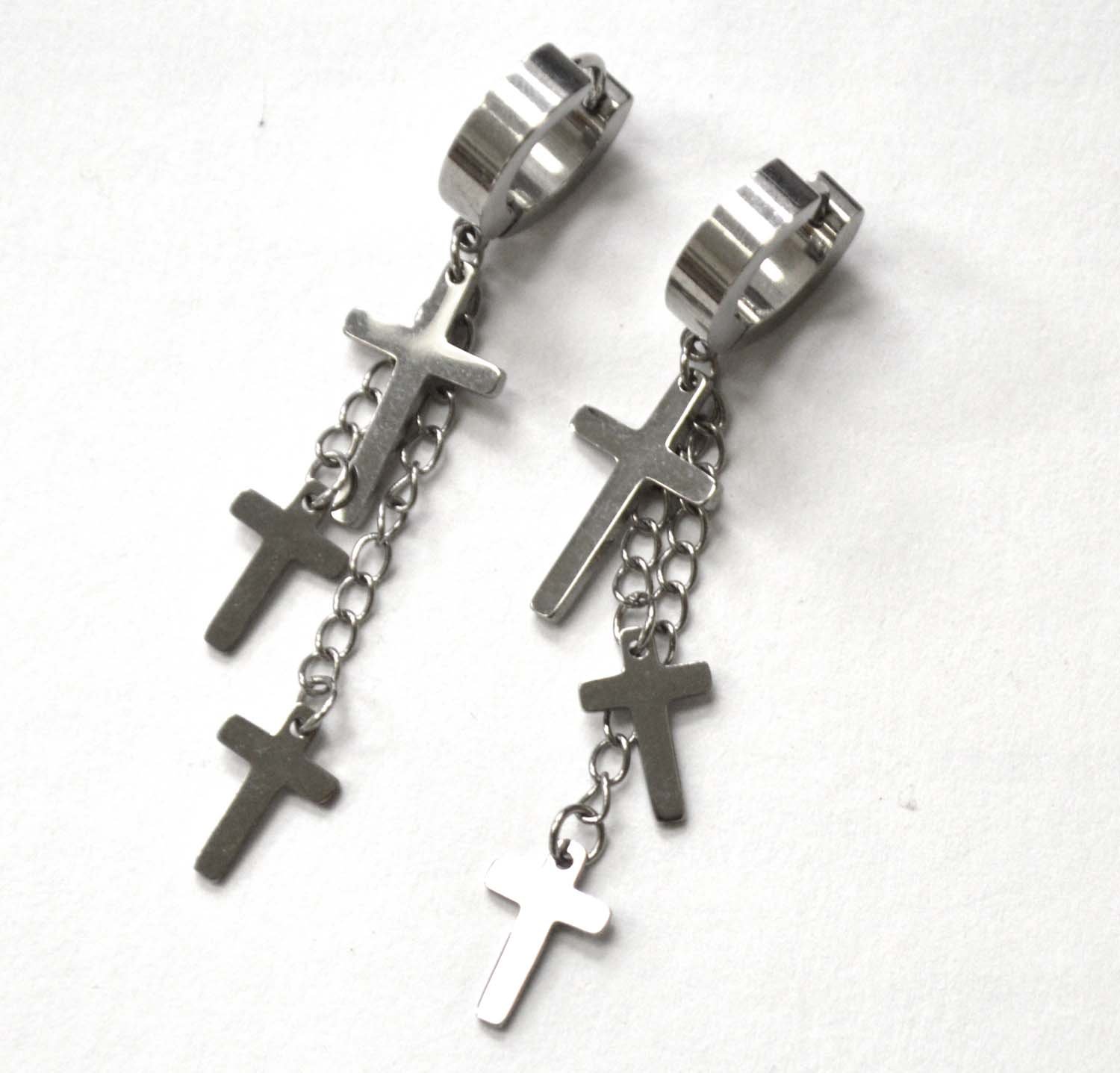 Triple Cross Dangling Stainless Steel Plated Earrings 83-670S