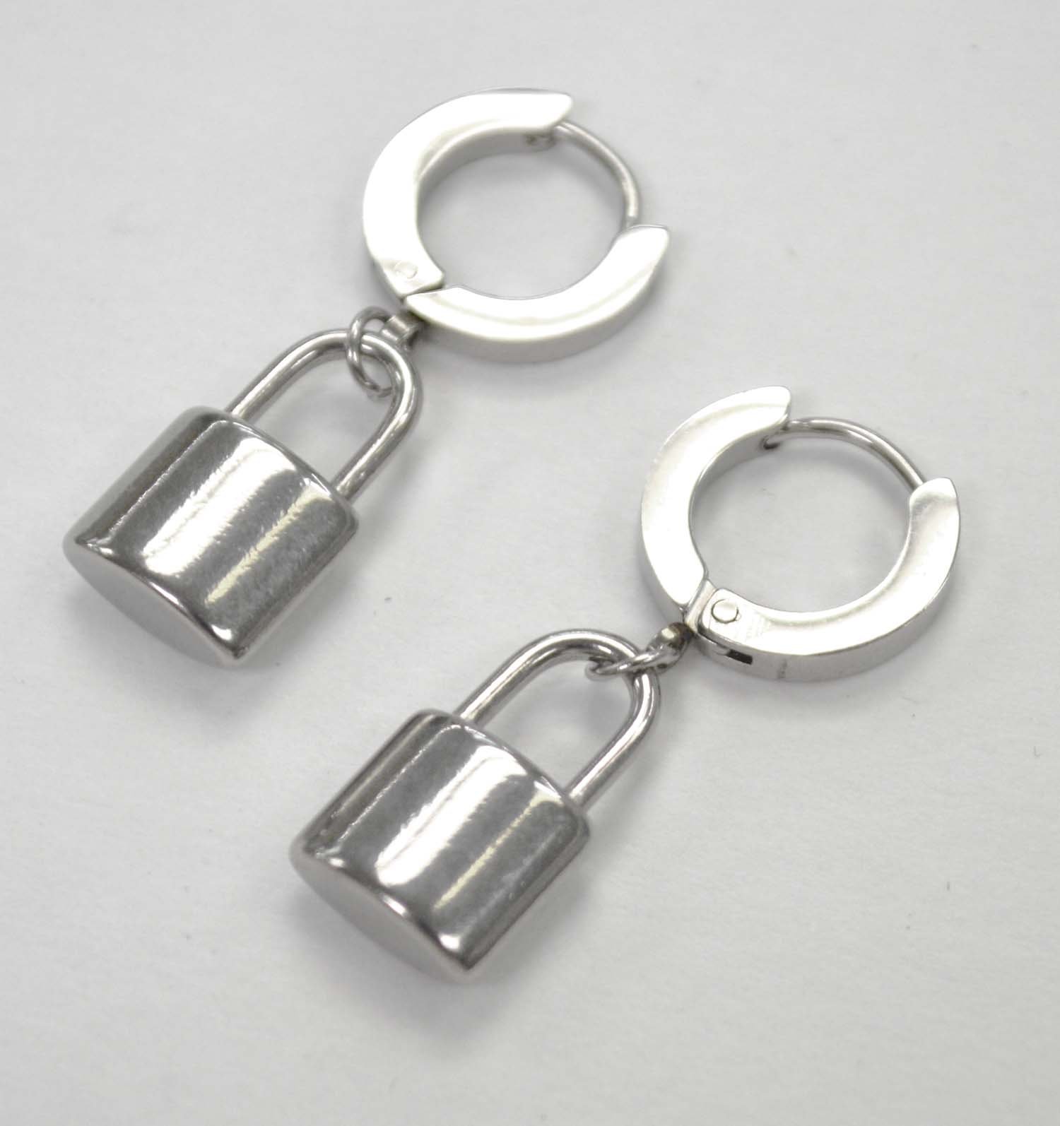 Padlock Stainless Steel Huggies Earrings 83-773S
