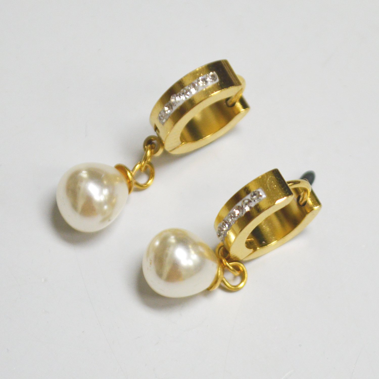 Dangling Pearl Gold Plated Huggies 83-781G