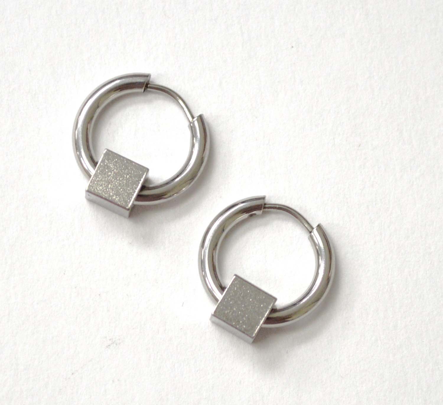 Hoops with Cube Stainless Steel Earrings 83-858S