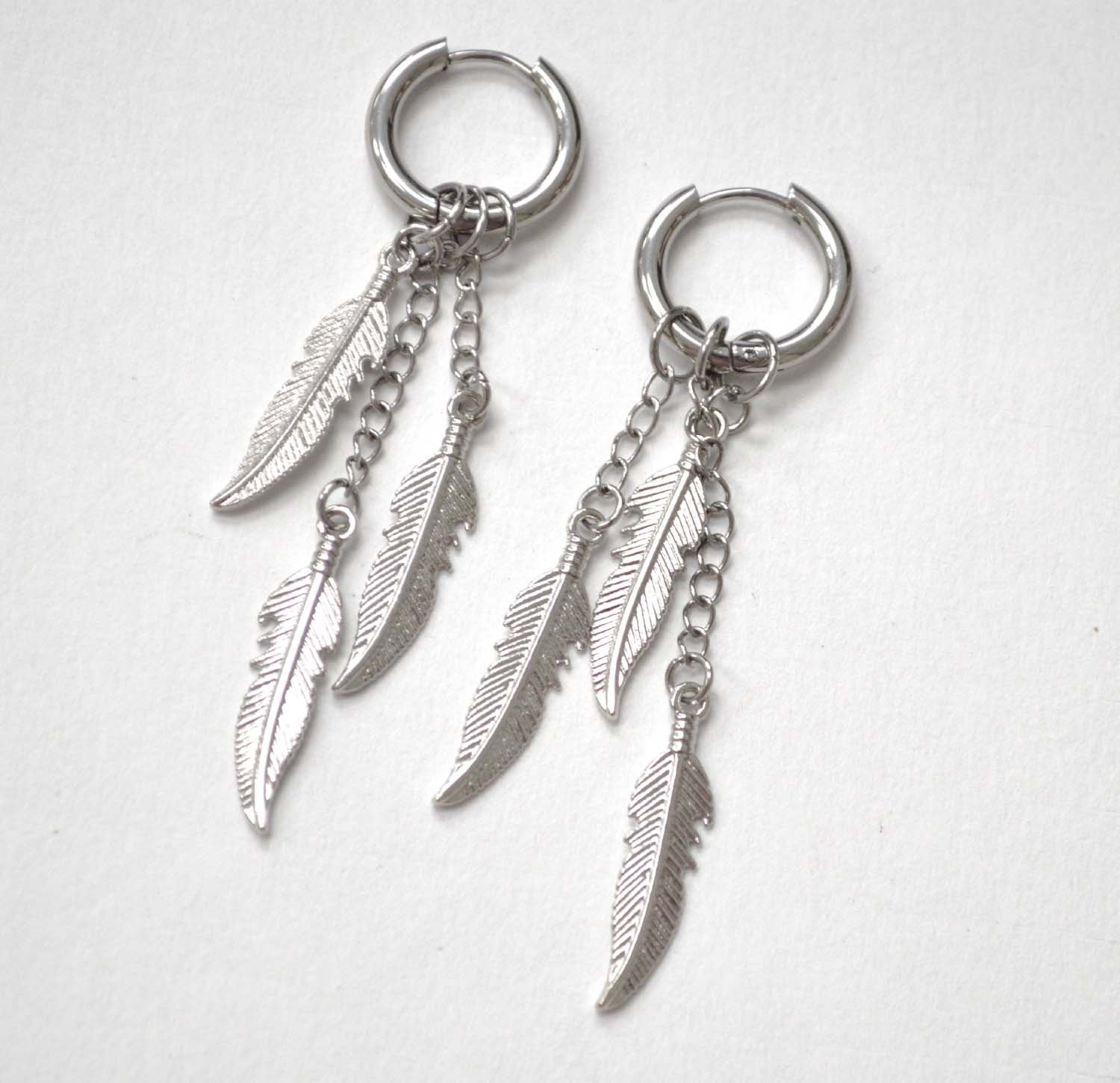 Dangling Feather in Hoops Stainless Steel Earrings 83-900S