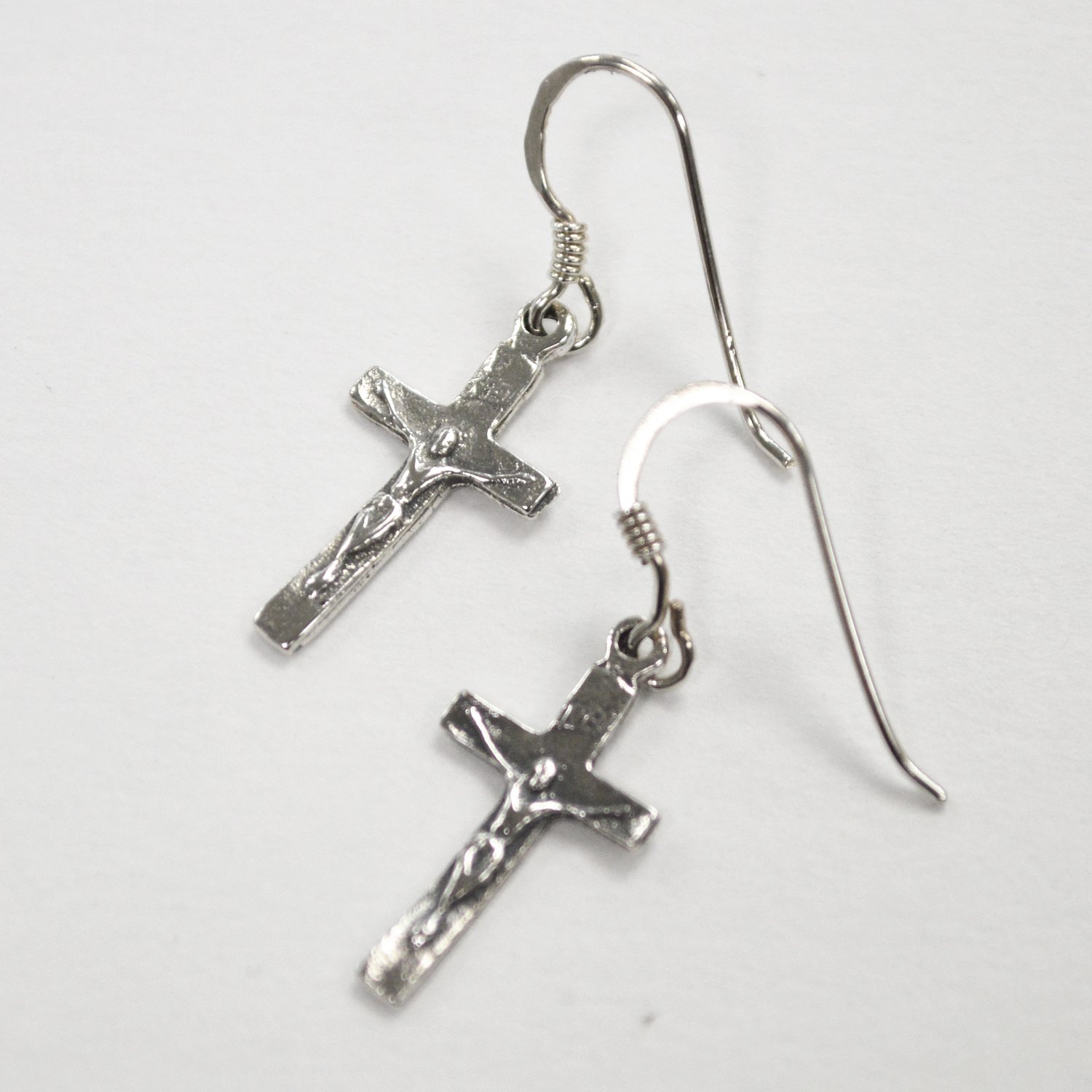 Crucifix Cross Sterling Silver Earrings 53-1078