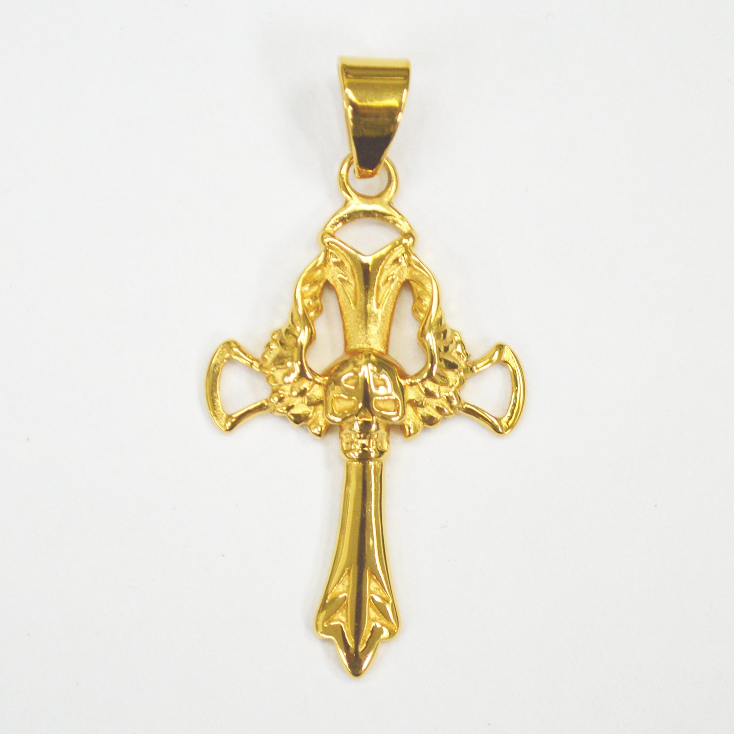 Cross with Skull Head Gold Plated Pendant 86-2322G