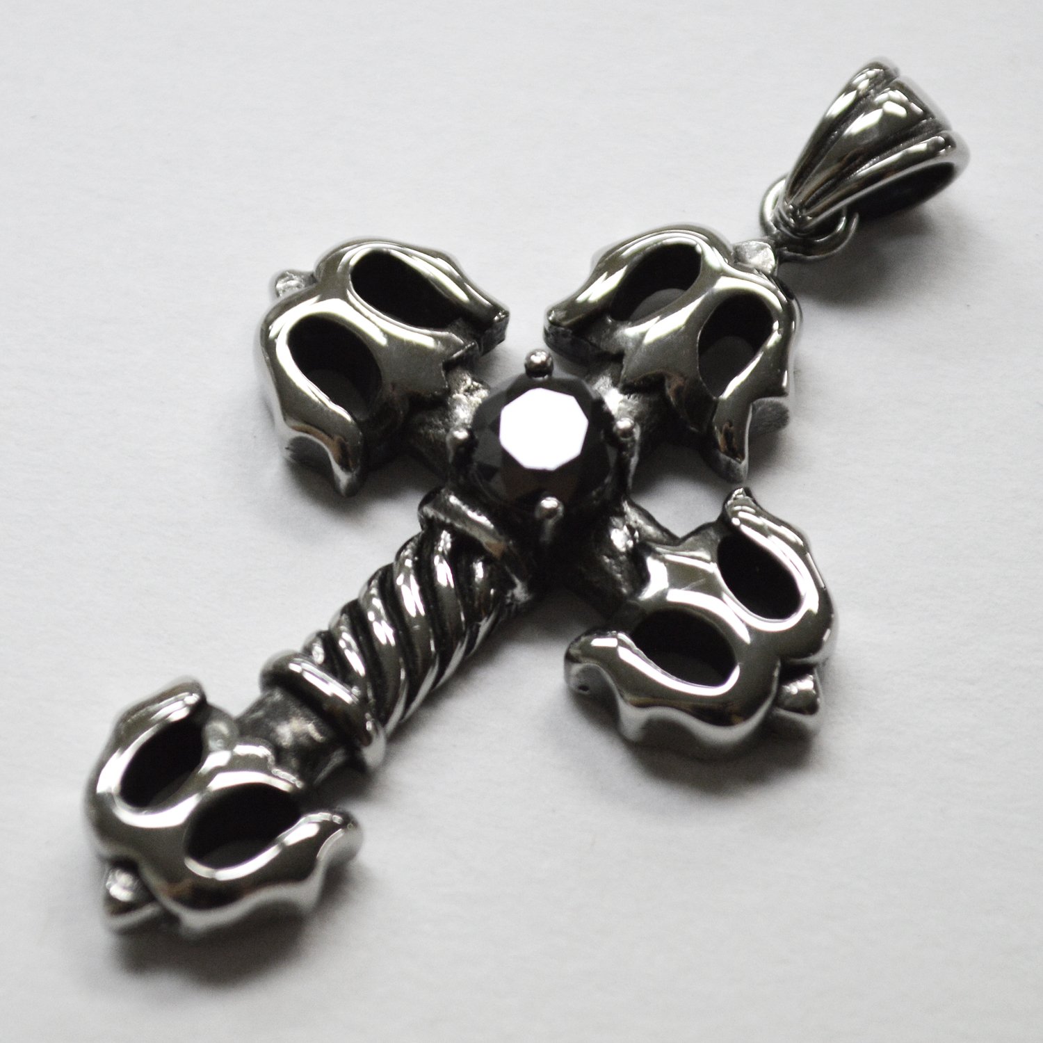 Cross with Black CZ Stone Pendant 86-709-Blk