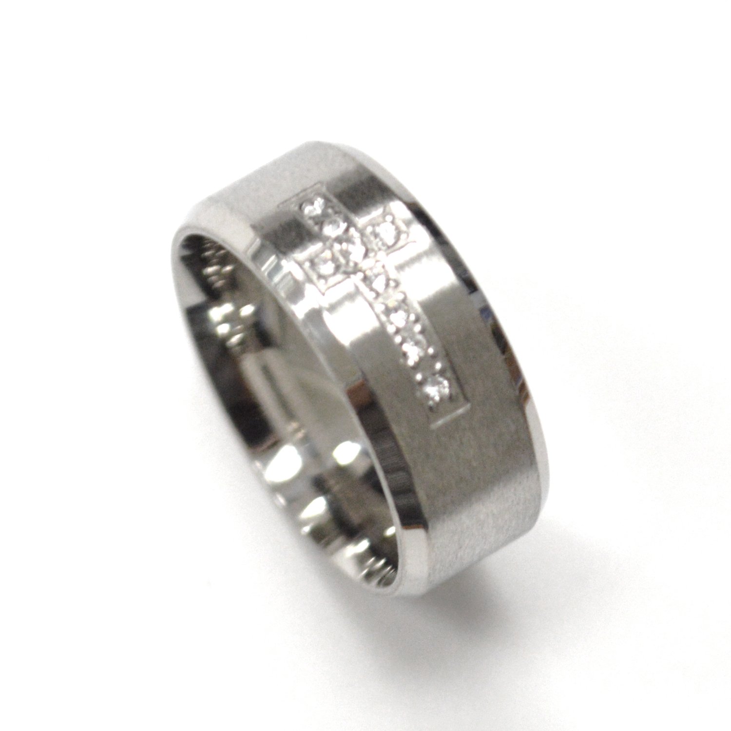Cross with Stones in Matte Finish Band 81-1825S
