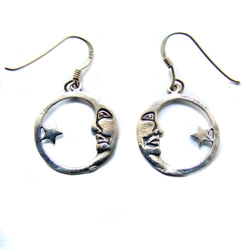 Half Moon and Star Sterling Silver Earrings 53-5313