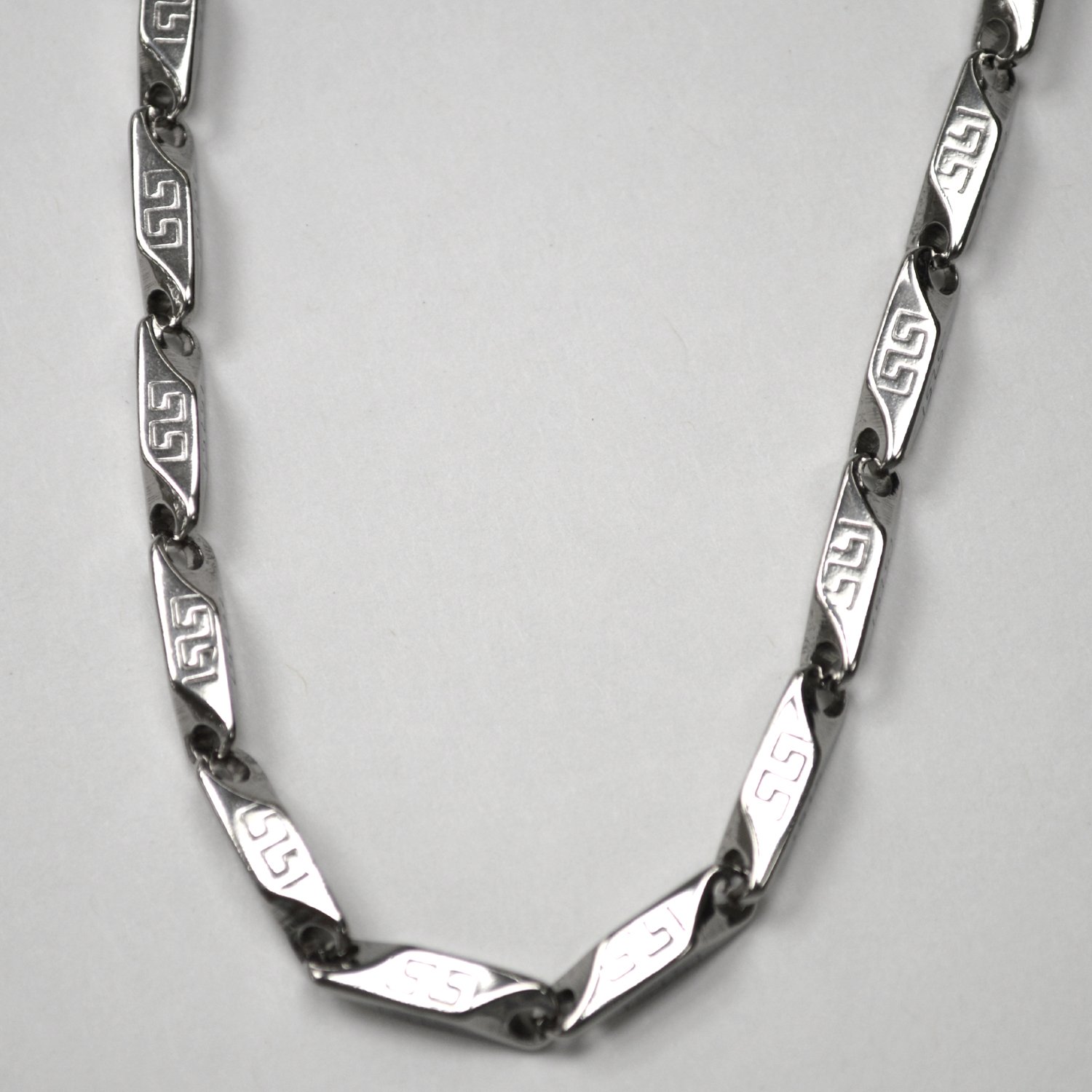 4mm Greek Key Block Stainless Steel Necklace 85-205S-4