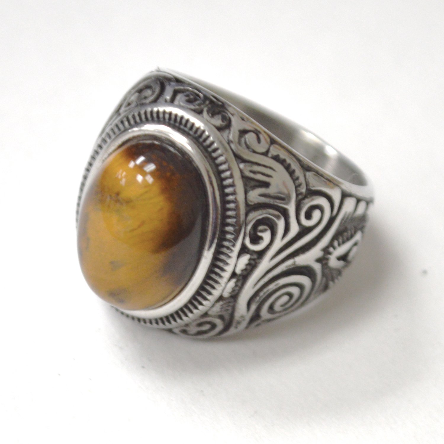 Tiger Eye Stone Stainless Steel Ring 81-1207S-TE
