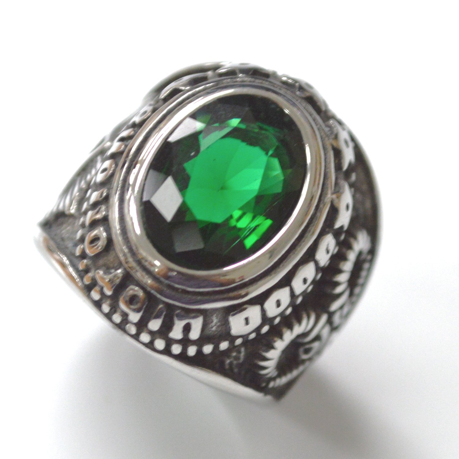 Green Stone Stainless Steel Ring 81-1219S-Green