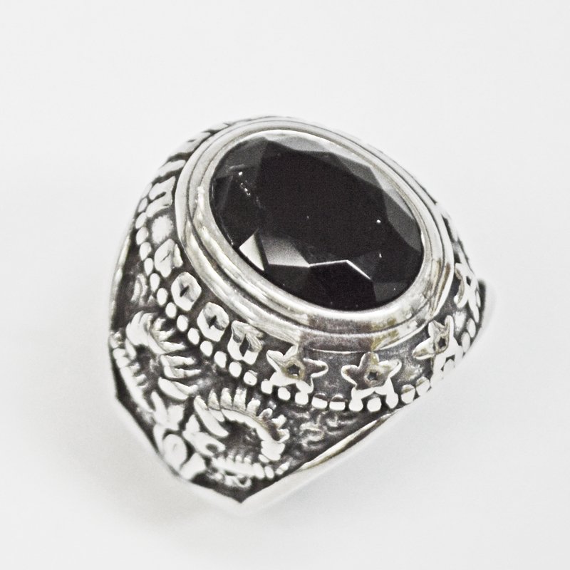 Black Stone Stainless Steel Ring 81-1219S-Black