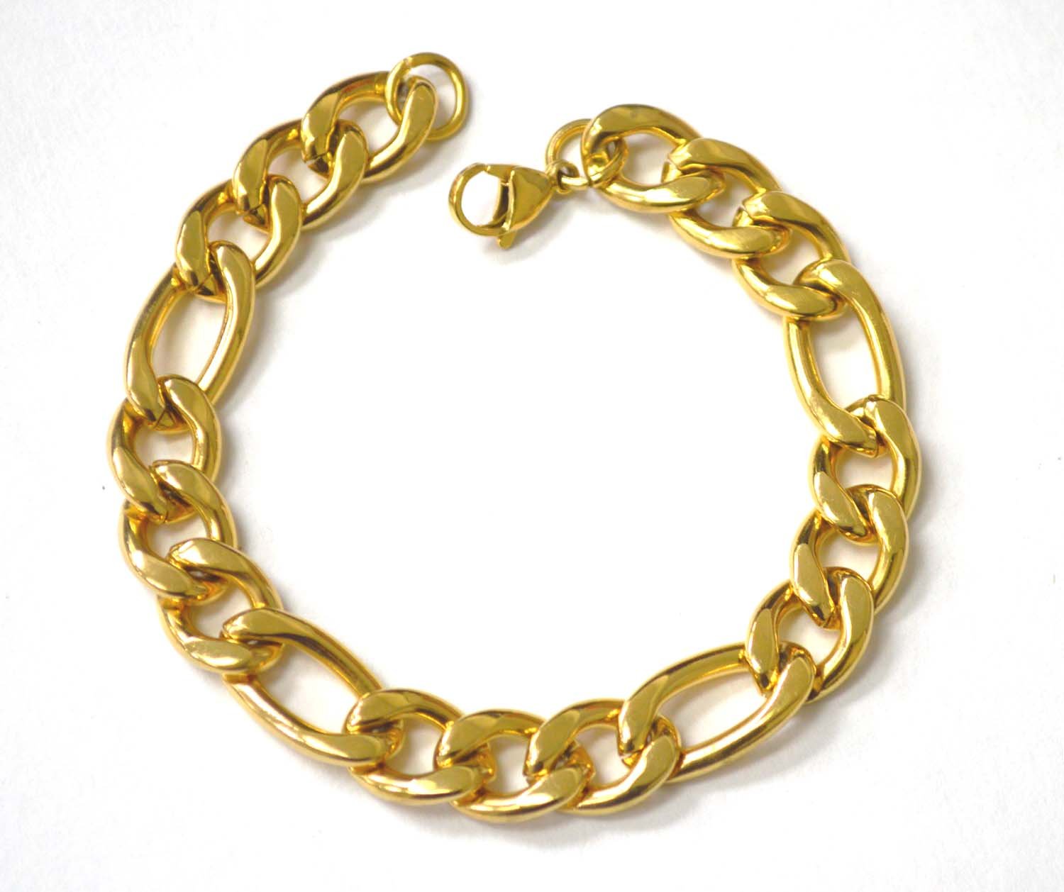 12mm Figaro Gold IP Plated Bracelet 84-110G-12