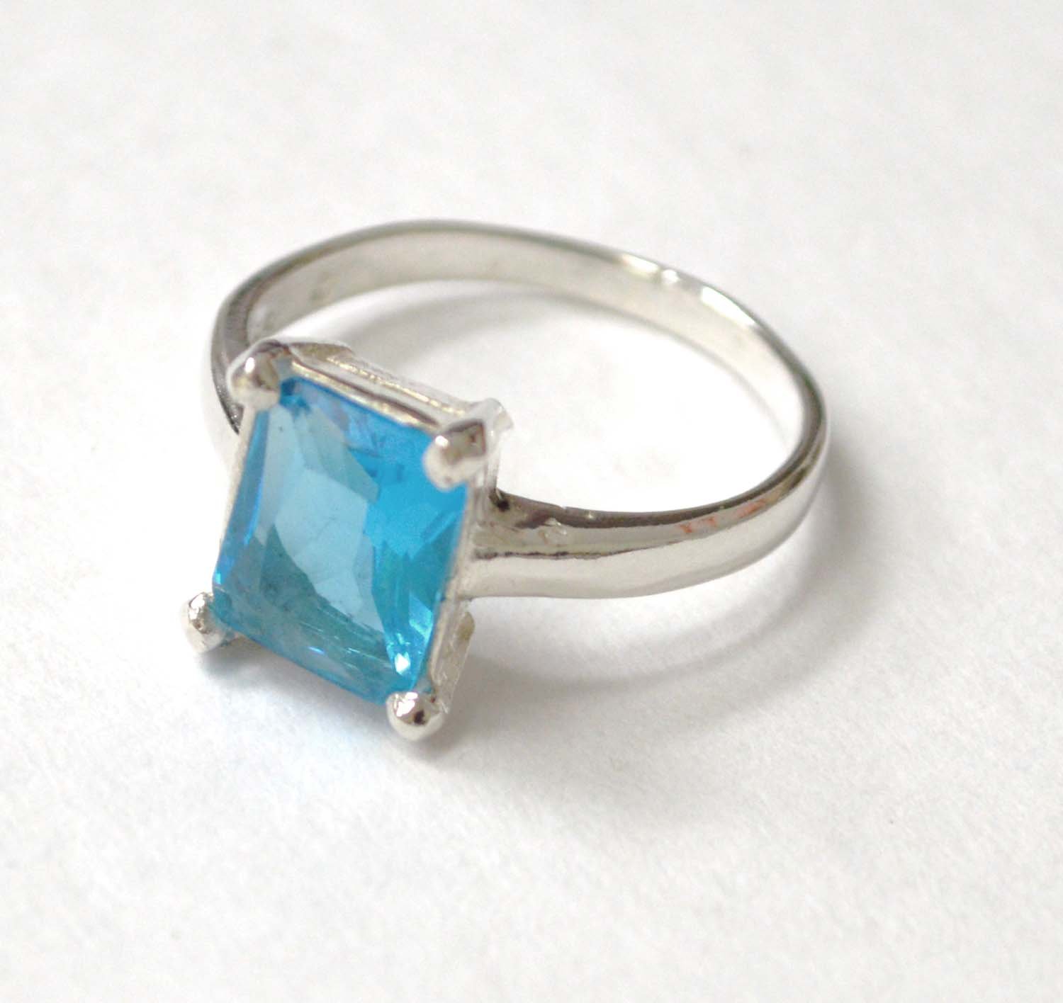 CZ Stone Ring Sterling Silver 51-2102 Blue