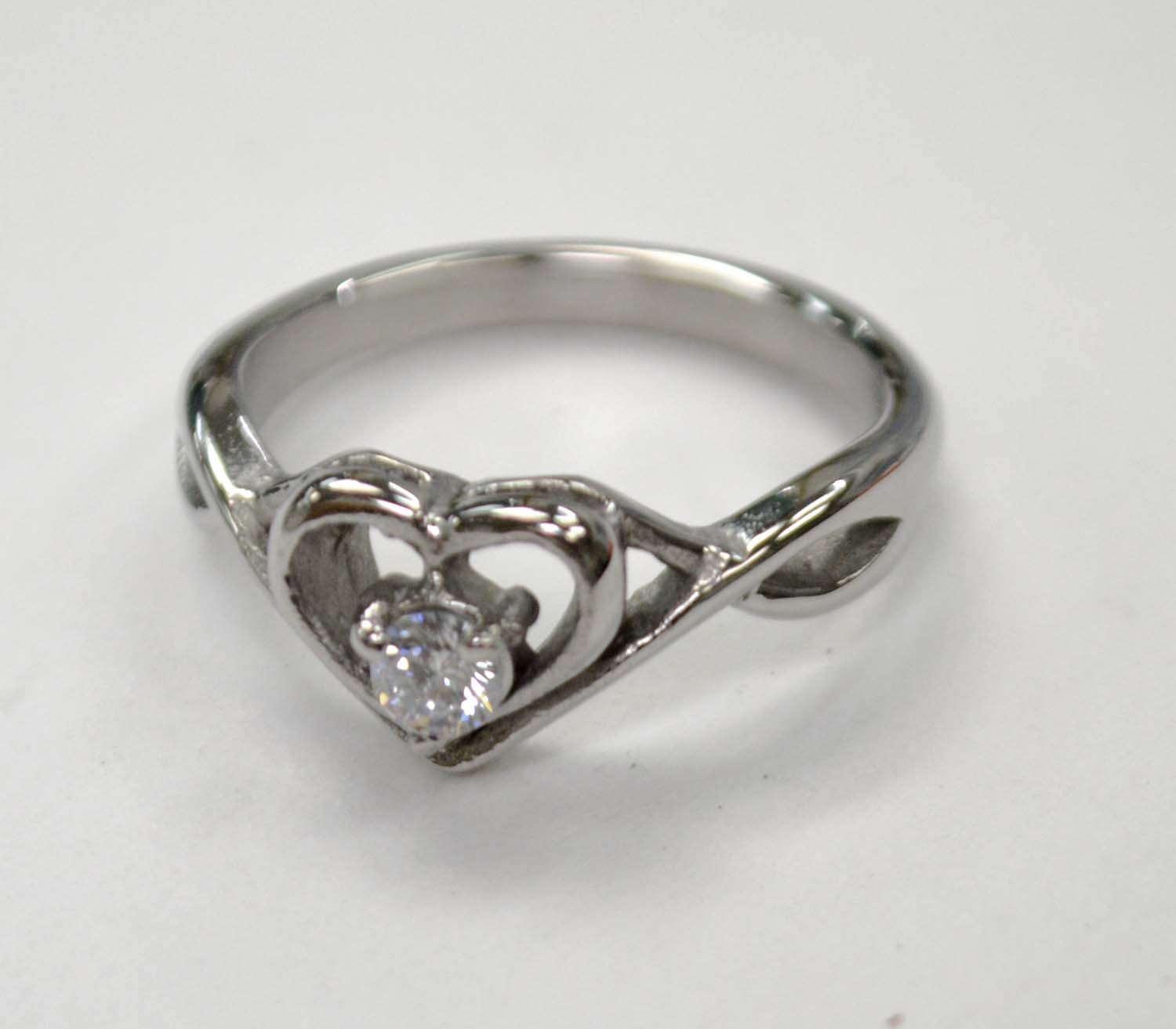 CZ Heart Stone Stainless Steel Ring 81-1442