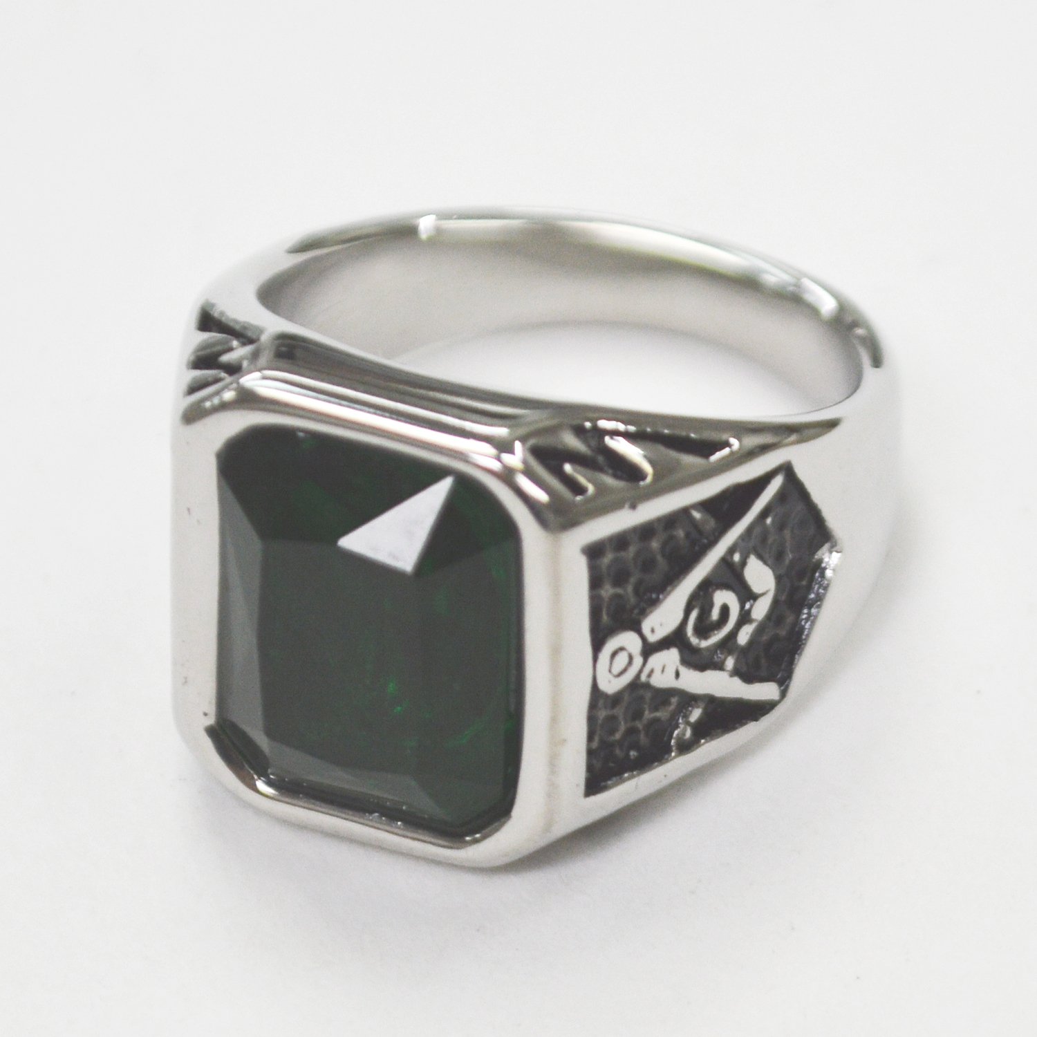 GREEN STONE MASONIC RING 81-1236S-Grn